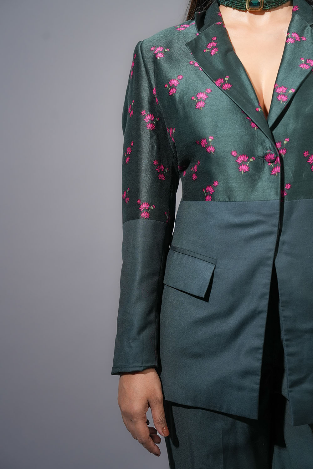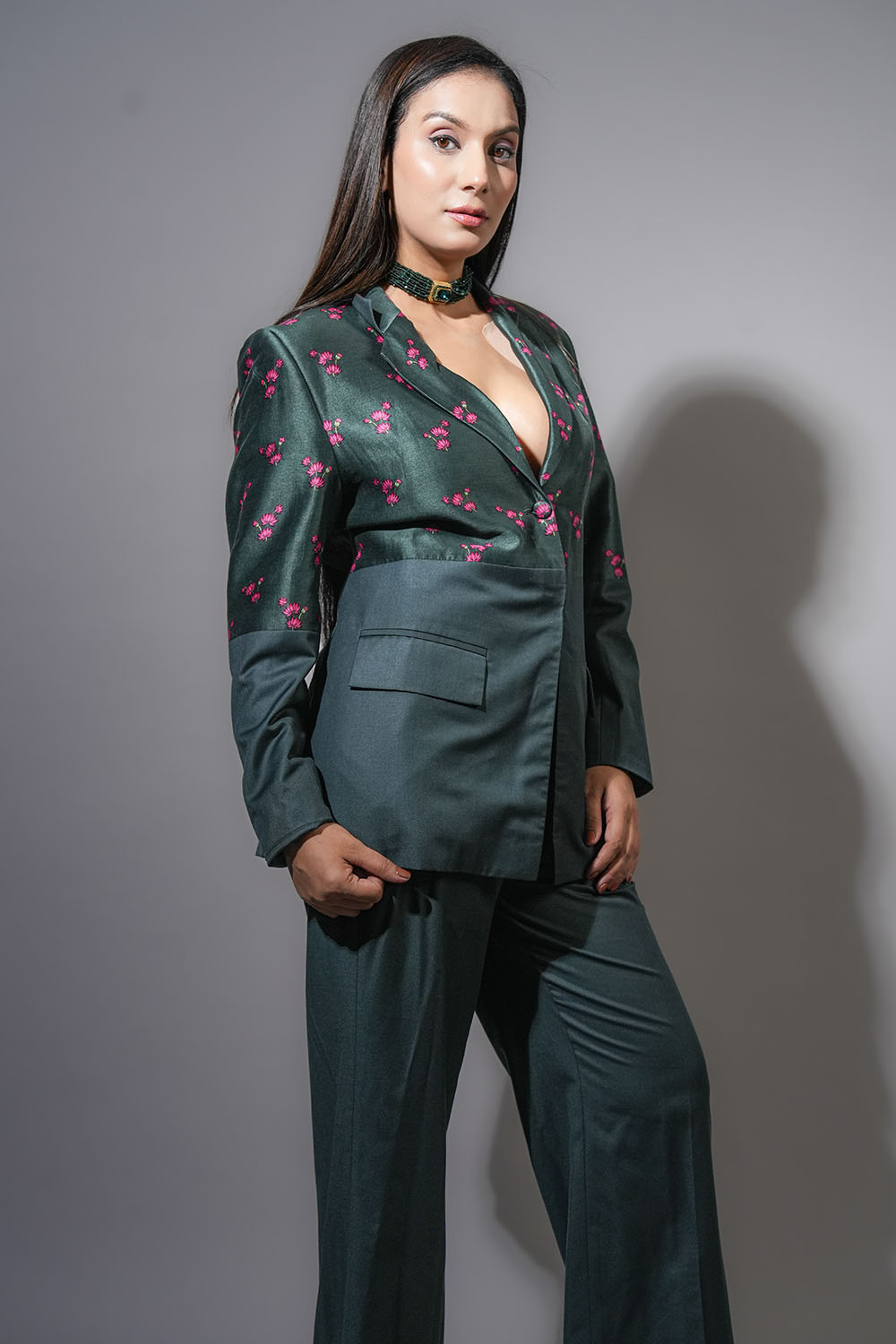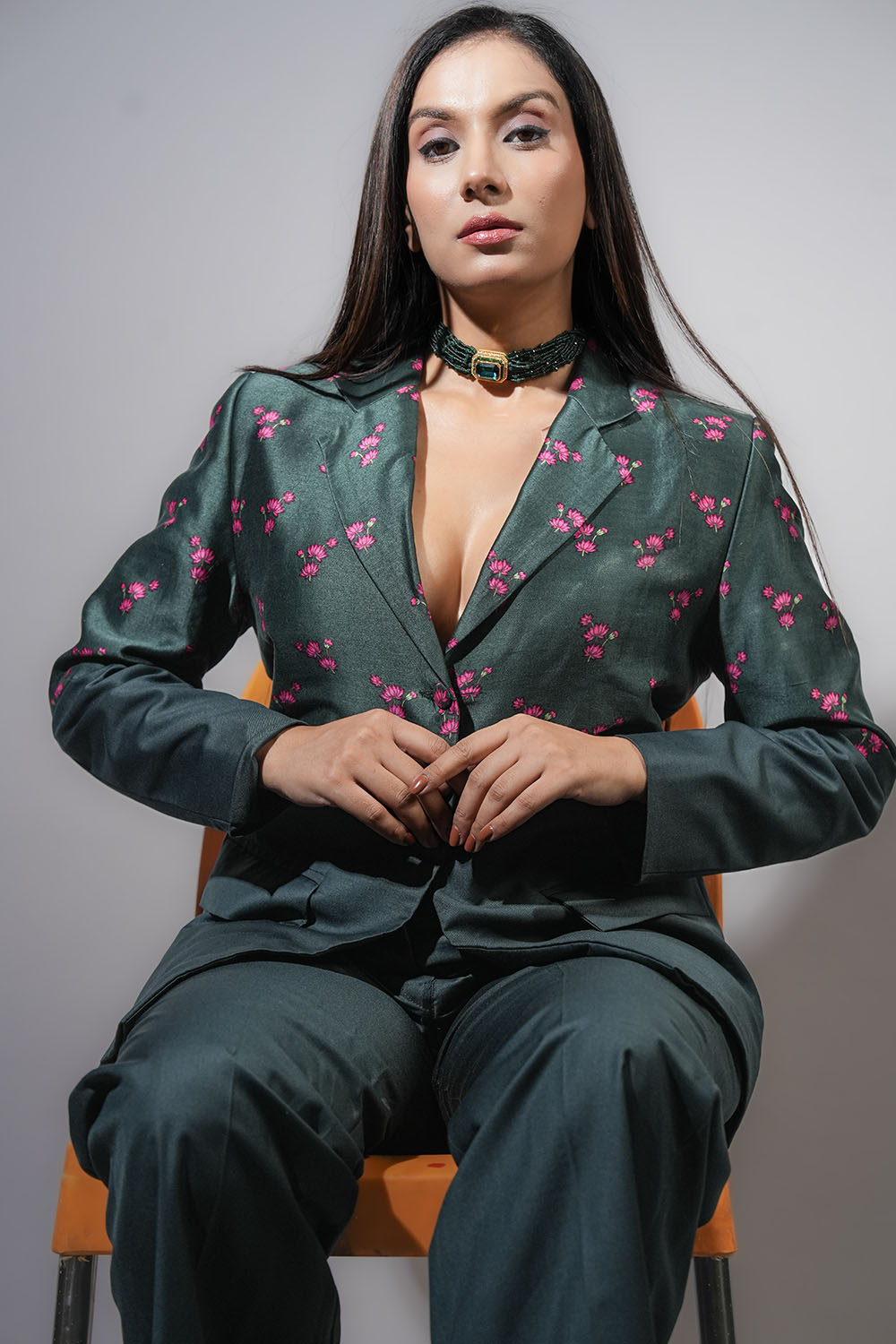 A lush interplay of power and poise — Emerald Bloom brings florals into focus against deep jewel tones. Feminine yet fearless, it’s designed for moments that demand grace with an edge.