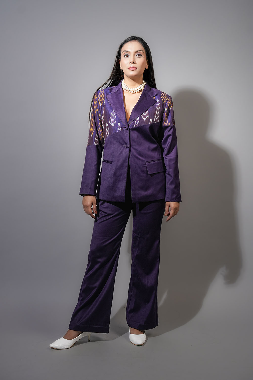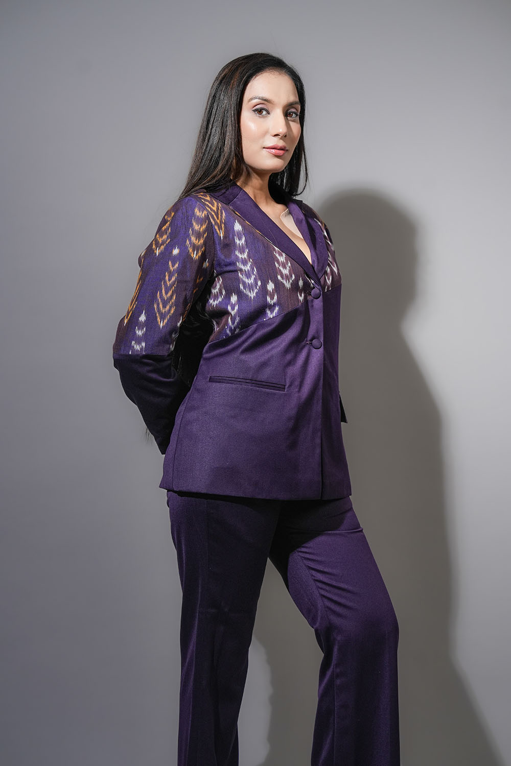 Mystery meets movement in Nocturne Ikat. The rich plum base and ikat-inspired weave reflect quiet confidence and fluid strength. Subtle yet striking, it’s crafted for women who let their presence speak before they do.